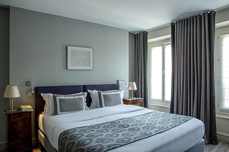Offering a 131 ft² terrace with views over the Parisian rooftops, this room features a flat-screen TV, free WiFi access and a private bathroom with bathtub and shower. Tea and coffee making facilities are provided.